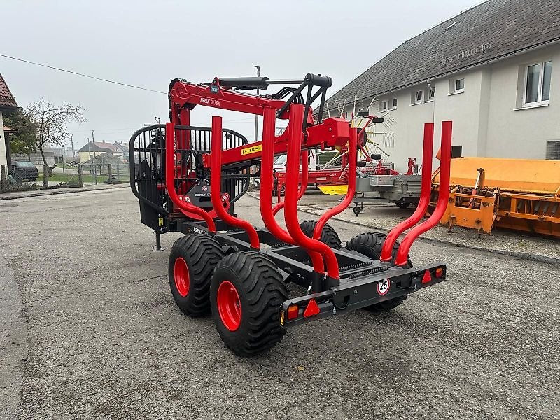 Reboque florestal com grua, alcance 7,6 m, capacidade de elevação 500 kg,