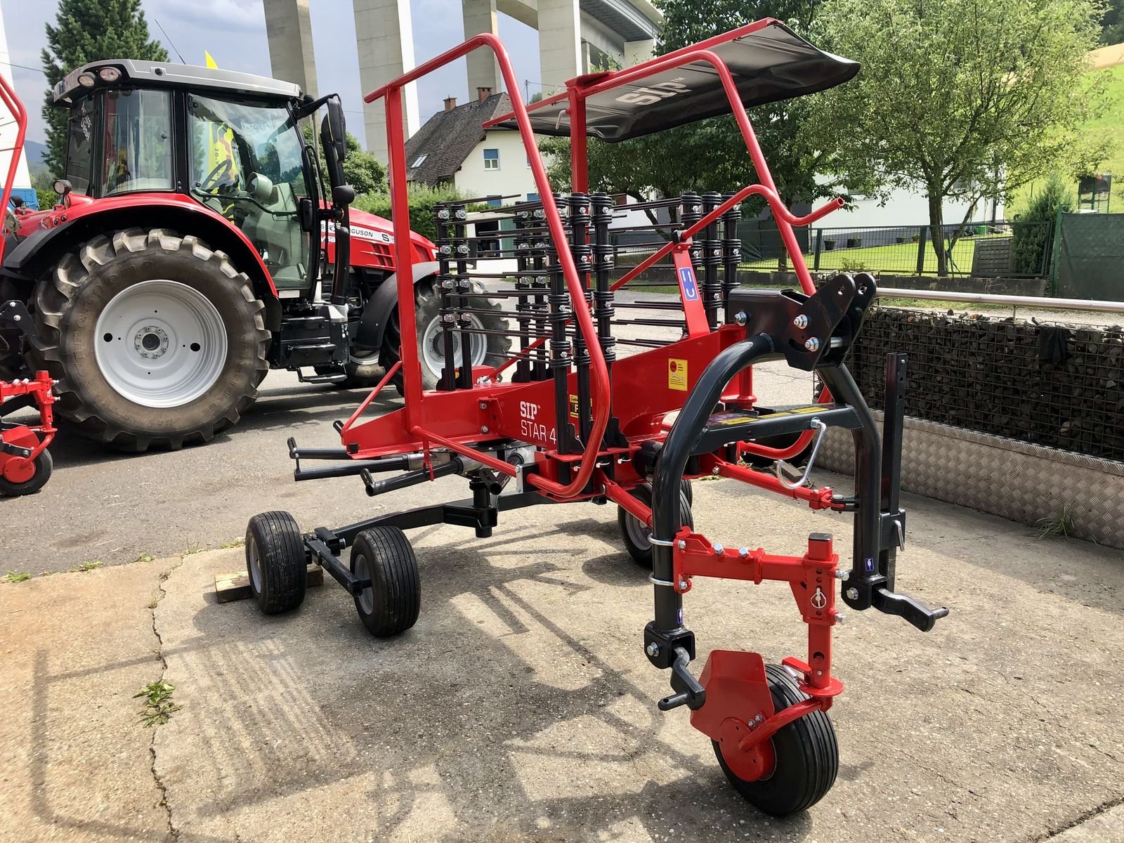 Ancinho monobloco Sip Star 400/11 - 11 braços de dentes com 4 dentes duplos cada - 4 dentes de mola duplos por braço de dente - suspensão modular do rotor - estrutura tandem - todos os dentes removíveis - rolamento giratório robusto para estabilidade direcional ideal - espaçadores de amortecimento - roda de suporte - cortina de ancinho dobrável - grade de proteção dobrável - eixo de transmissão. A máquina está disponível em estoque e pode ser visualizada conosco!